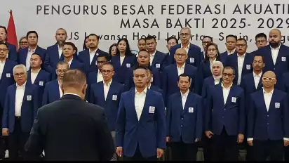 Jakarta, tvOnenews.com - Anindya Bakrie bersama Pengurus Besar (PB) Akuatik Indonesia secara resmi dilantik oleh Komite Olahraga Nasional Indonesia (KONI) untuk masa jabatan 2025-2029.