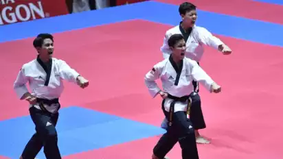 Setelah gagal mendapatkan medali emas dari Bulu Tangkis Beregu Putri, Taekwondo menjadi cabor pertama yang menyumbang emas.