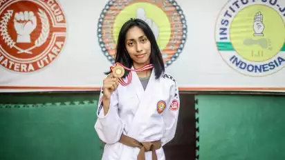 "Kebetulan Dojonya di depan rumah. Saat masih kelas 5 SD kepingin aja belajar karena sering lihat orang latihan dan orang tua juga mendukung," ujar wanita berdarah Batak dan India itu.