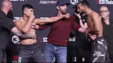 Kedua petarung kelas ringan itu melakoni sesi weigh-in alias timbang badan di tempat yang sama. Setelahnya, mereka melakoni sesi face-off yang mana adalah tradisi jelang duel.Â