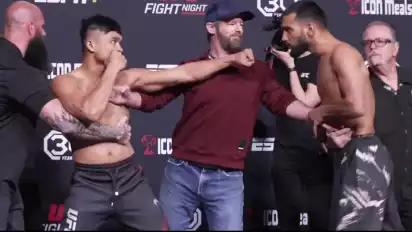 Kedua petarung kelas ringan itu melakoni sesi weigh-in alias timbang badan di tempat yang sama. Setelahnya, mereka melakoni sesi face-off yang mana adalah tradisi jelang duel.