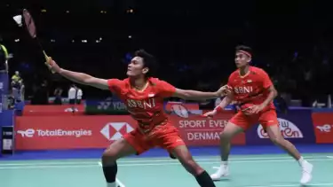 tvOnenews.com - Ganda putra Indonesia, Muhammad Shohibul Fikri/Bagas Maulana kalah dari unggulan ketiga asal China Liang Wei Keng/Wang Chang di babak perempat final Kejuaraan Dunia BWF 2023 di Denmark, Jumat (25/8/2023).