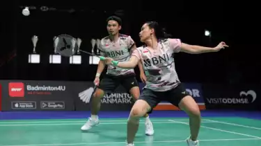 tvOnenews.com - Ganda campuran Indonesia, Rinov Rivaldy/Pitha Haningtyas Mentari lolos ke babak 16 besar China Master 2023.