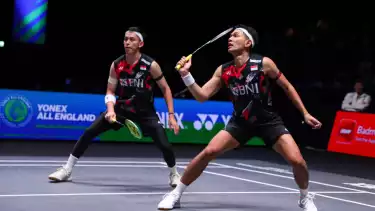 tvOnenews.com - Fajar Alfian/Muhammad Rian Ardianto menyusul Anthony Sinisuka Ginting dan Jonatan Christie ke babak final All England 2024.
