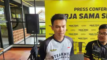 Atlet bulutangkis tunggal putra Indonesia, Christian Adinata, menjawab pertanyaan pewarta saat ditemui di Jakarta, Senin (20/1/2025). (sumber: ANTARA/Rauf Adipati/am)