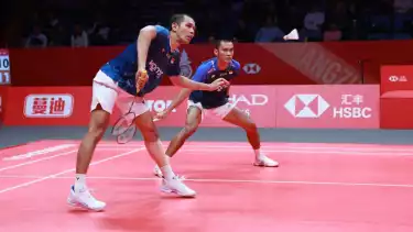 Kemenangan tersebut diraih oleh Sabar Karyaman Gutama/Moh Reza Pahlevi Isfahani, yang sukses menangalahkan Man Wei Chong/Kai Wun Tee (Malaysia/4) dengan skor ketat 23-21 dan 21-19.