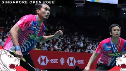 Jakarta - Ganda putra peringkat tiga dunia, Hendra Setiawan/Mohammad Ahsan yang dikenal dengan julukan "The Daddies" menuju babak perempat final Kejuaraan Dunia 2022 berkat kerja keras mengatasi tekanan pasangan Mark Lamsfuss/Marvin Seidel di Tokyo, Kamis.