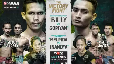 Jakarta - OnePride MMA Fight Night 51 akan kembali hadir untuk pemirsa tvOne akhir pekan ini Sabtu (23/10/2021) pukul 22.00 WIB. Mengusung tema The Victory Fight OnePride MMA akan menyuguhkan 4 partai seru, yakni Title Fight Sabuk Juara Kelas Strawweight dan 3 partai perbaikan peringkat. Gelaran OnePride MMA berjalan tanpa penonton dan menerapkan standar protokol kesehatan yang ketat.