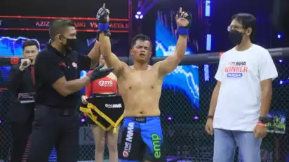 Jakarta - Duel berdarah, tersaji dalam partai perbaikan peringkat kelas bantam, antara Aziz Lamarang kontra Fhasya Ikhsan, pada Fight Night 53, OnePride MMA, Fight Of Warriors.
