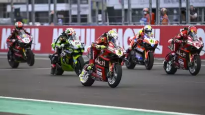 Adapun pembalap Pata Yamaha, Toprak Razgatlioglu, mencoba dengan sekuat tenaga menyalip dua riders Ducati di depannya.