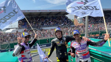 Bezzecchi berhasil menaiki podium MotoGP Le Mans bersama George Martin dan Johann Zarco.