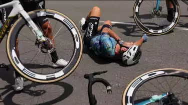 Cavendish (38) yang spesialis sprint harus menyudahi perjuangannya di Tour menyusul dugaan keretakan tulang selangka ketika terjatuh pada 60km sebelum finis.