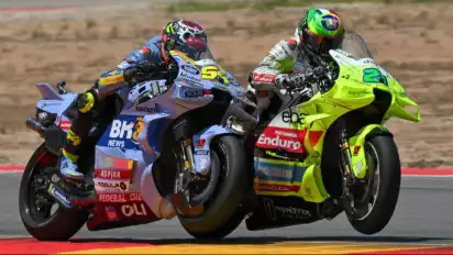 Rekan satu akademi Morbidelli, Fabio Di Giannantonio, juga menunjukkan performa apik dengan finis ketiga, hanya berselisih 0,005 detik dari Quartararo.