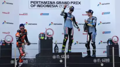 Fermin Aldeguer di podium juara MotoGP Mandalika 2025