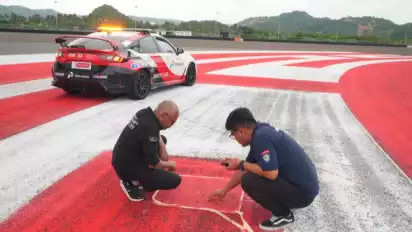 Area runoff asphalt juga diperiksa untuk memastikan tidak terdapat material yang berpotensi membahayakan pembalap.