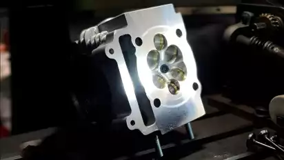 Bukan sekadar pamer jumlah katup, Tim Johan Garage membongkar habis logika engineering konvensional. Di ruang bakar yang sangat sempit, mereka berhasil menanamkan tiga katup isap (21mm, 19mm, 21mm) serta tiga katup buang (19mm, 17mm, 19mm).