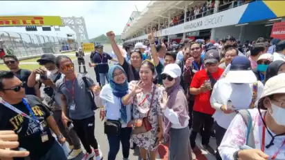 Nah, setelah beberapa saat Rara langsung diserbu oleh penonton untuk minta foto dan banyak pula yang mengabadikan dengan video. Meski cuaca terik, Rara tetap melayani permintaan penonton yang mendapatkan kesempatan pit walk.